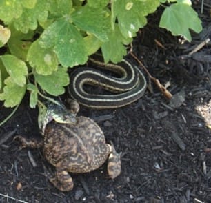 All around us, competition and conflict are occurring, and in some instances the encounters are fatal. Consider the mockingbird that chased a fox out of my driveway by persistently dive-bombing it (and making contact several times!), the tiny birds that, flying high in the sky, harass the much-larger hawks that threaten their young, or the garter snake that grabbed and ate a toad in my backyard (a day-long process!).