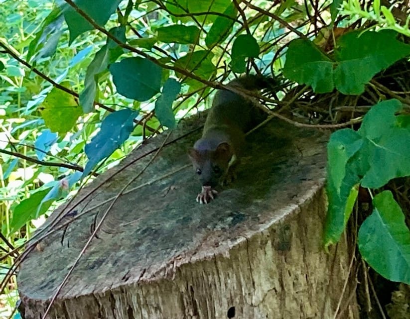 My chickens are often involved in this competition dance. I once heard distress calls in my coop, which is protected by a chain-link fence enclosure, and rushed in just in time to see a weasel run out. I’d found a chicken dead and gutted in there the week before, probably by the same weasel. Those little buggers can fit easily through the mesh of the fence, and who am I to blame them for taking an easy meal? Previously, I’d lost one chicken to a hawk attack and rescued another by arriving just in time to chase the hawk away from the chicken that was in his grasp.