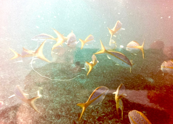 Life was everywhere. Around the reef I saw Yellow-tailed snappers, pencil fish, a sting ray, a nurse shark eating a conch, a very large barracuda, an enormous 600 lb Atlantic Goliath grouper, squid, an octopus eating a conch (I guess it was not a good day to be a conch.), and so much more. It was breathtaking.