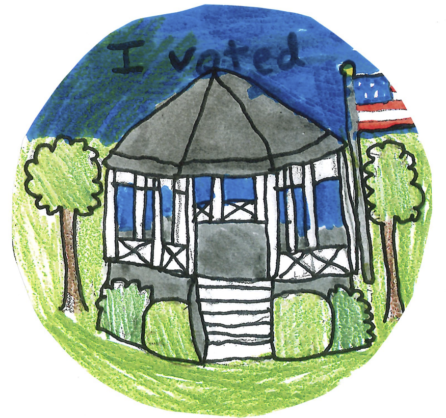 Reid Calandrelli, with his depiction of the town's gazebo, took home the prize this year, followed by runner up Tessa, with her eagle design on a red-white-and-blue background. The winning design and the runner-up will be handed out to voters at this year's local election.