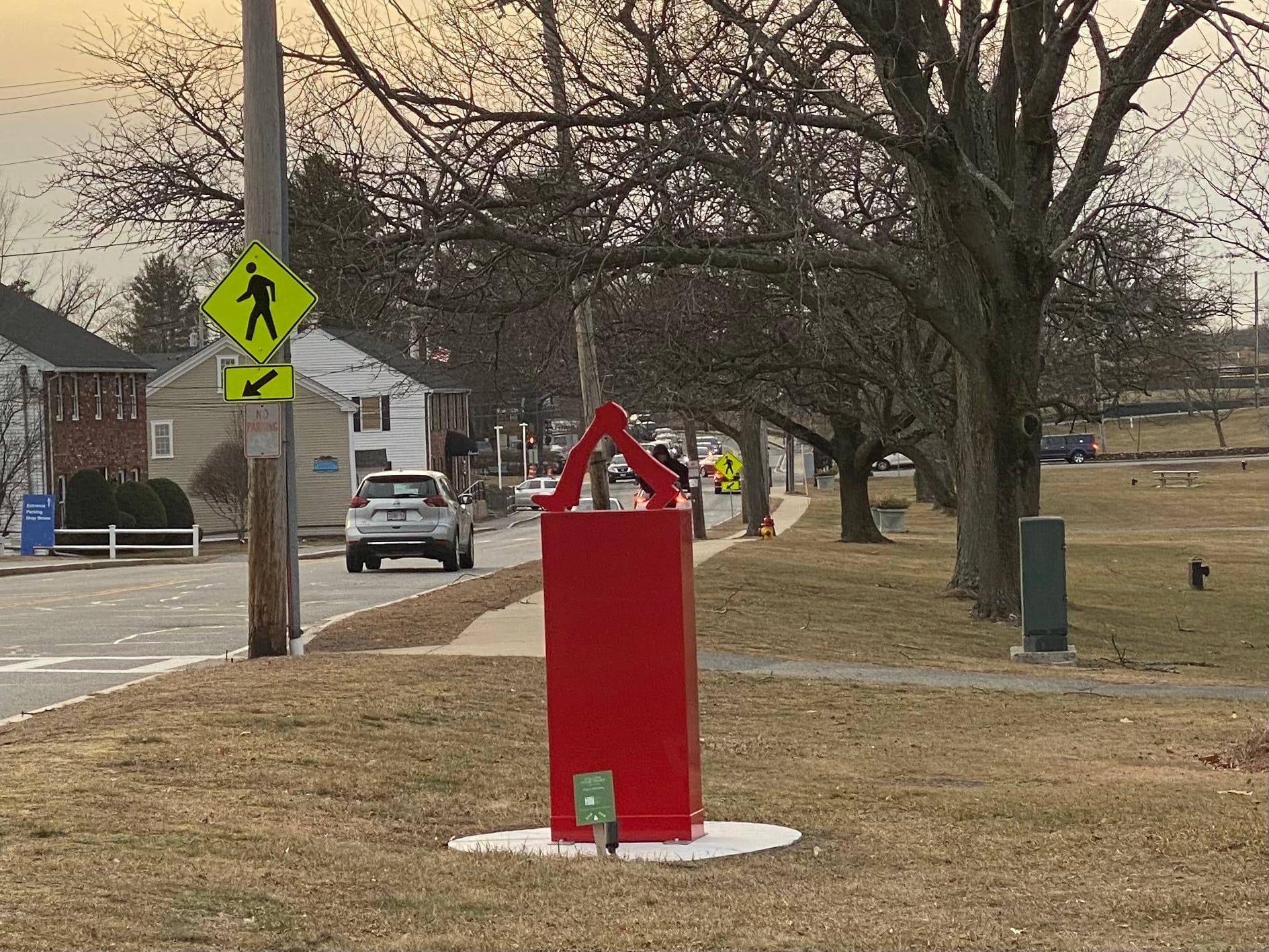 Update on Follow Your Heart sculpture: On the evening of February 2, the Sculpture Park Committee was notified that this sculpture, the only one purchased by Burlington with funds allocated by Town Meeting, was broken off at the waist and the top part was broken into three different pieces. Those pieces were returned to sculptor Mark Wholey, as will be the bottom part, and he will repair and reinforce the work of art. No branches or other obvious causes of this damage were found in the area, and according to Wholey, it’s unlikely the damage was accidental. There is a police detective assigned to investigate the incident, and the town is looking into installing cameras in the area. An insurance claim is also being filed.